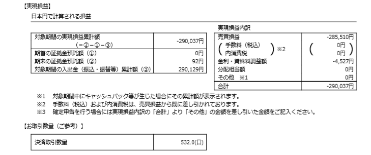 今回は反省も兼ねて、取引報告書を確認してみました。