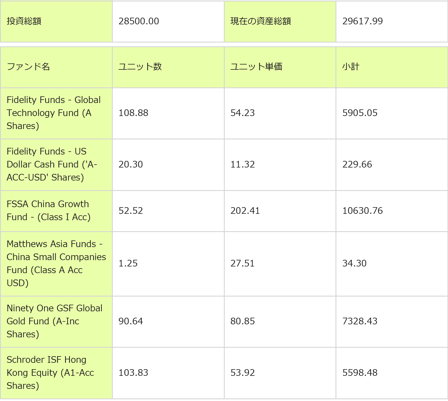 変更後のPFはざっくりチャイナグロース40%、グローバルテクノロジー20%、グローバル金鉱株20%、香港株20%