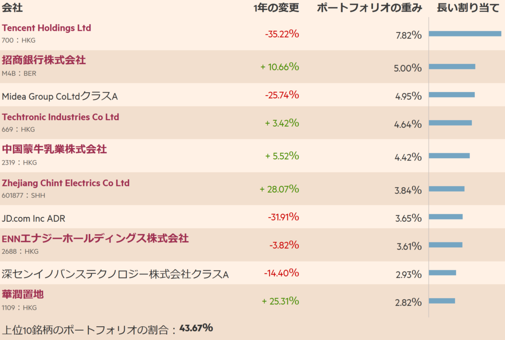 ファンドは、主に(純資産価値の少なくとも70%)、株式または中華人民共和国からの収益のいずれかを保有する企業が発行した株式または株式関連証券に投資します。中国、香港、台湾、米国、またはOECD加盟国の規制市場で取引、取引、または取引されています。ファンドは、任意のセクターに投資される可能性のある純資産価値の部分に対する制限、または投資する可能性のある企業の時価総額に対する制限の対象ではありません。