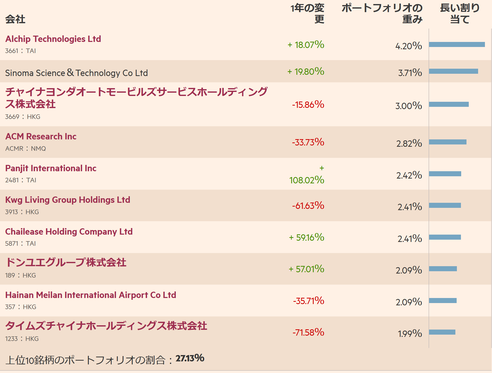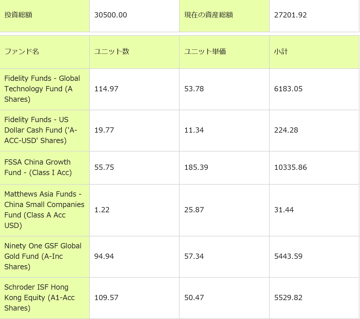 変更後のPFはざっくりチャイナグロース40%、グローバルテクノロジー20%、グローバル金鉱株20%、香港株20%