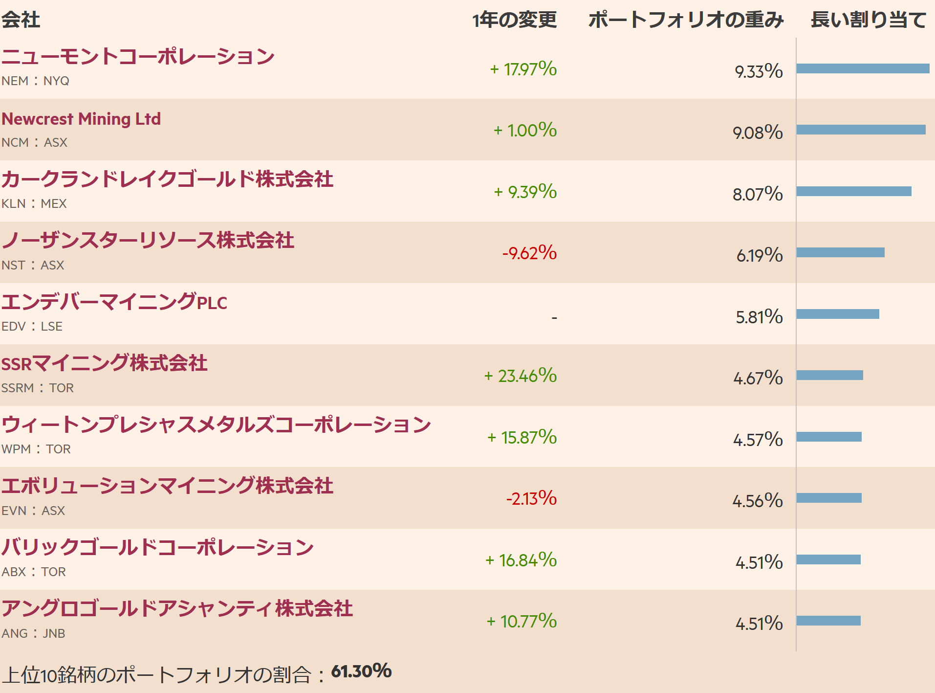 サブファンドは、主に金の採掘に携わる世界中の企業が発行する株式への投資を通じて、長期的な資本成長を達成することを目的としています。サブファンドはまた、t前後の企業に最大3分の1を投資する可能性があります他の貴金属や他の鉱物や金属の採掘に携わっている地球儀。サブファンドはまた、他の譲渡可能な有価証券、マネーマーケット商品、現金および準現金、デリバティブおよび先物取引、預金および集団投資スキームのユニットに投資する場合があります。サブファンドは、ヘッジおよび/または効率的なポートフォリオ管理の目的でデリバティブを使用する場合があります。