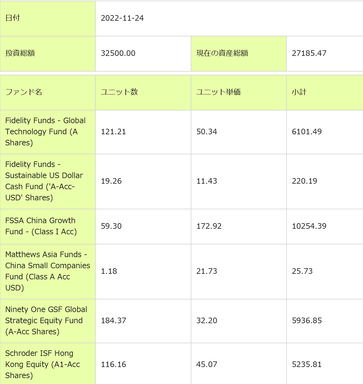 変更後のPFはざっくりチャイナグロース40%、グローバルテクノロジー20%、グローバル金鉱株20%、香港株20%