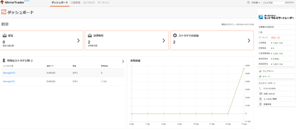 Twitterでもフォローしているタクスズキさんが紹介している、セントラル短資FXの自動売買「ミラートレーダー」。