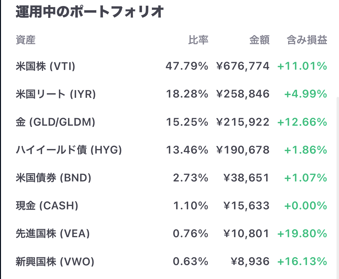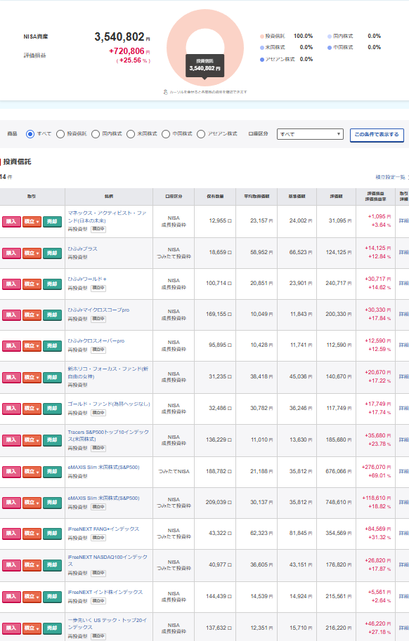 騰落率がよくない、マネックスアクティビストファンド、インド株インデックスを削り、その分ゴールドに追加しました。
