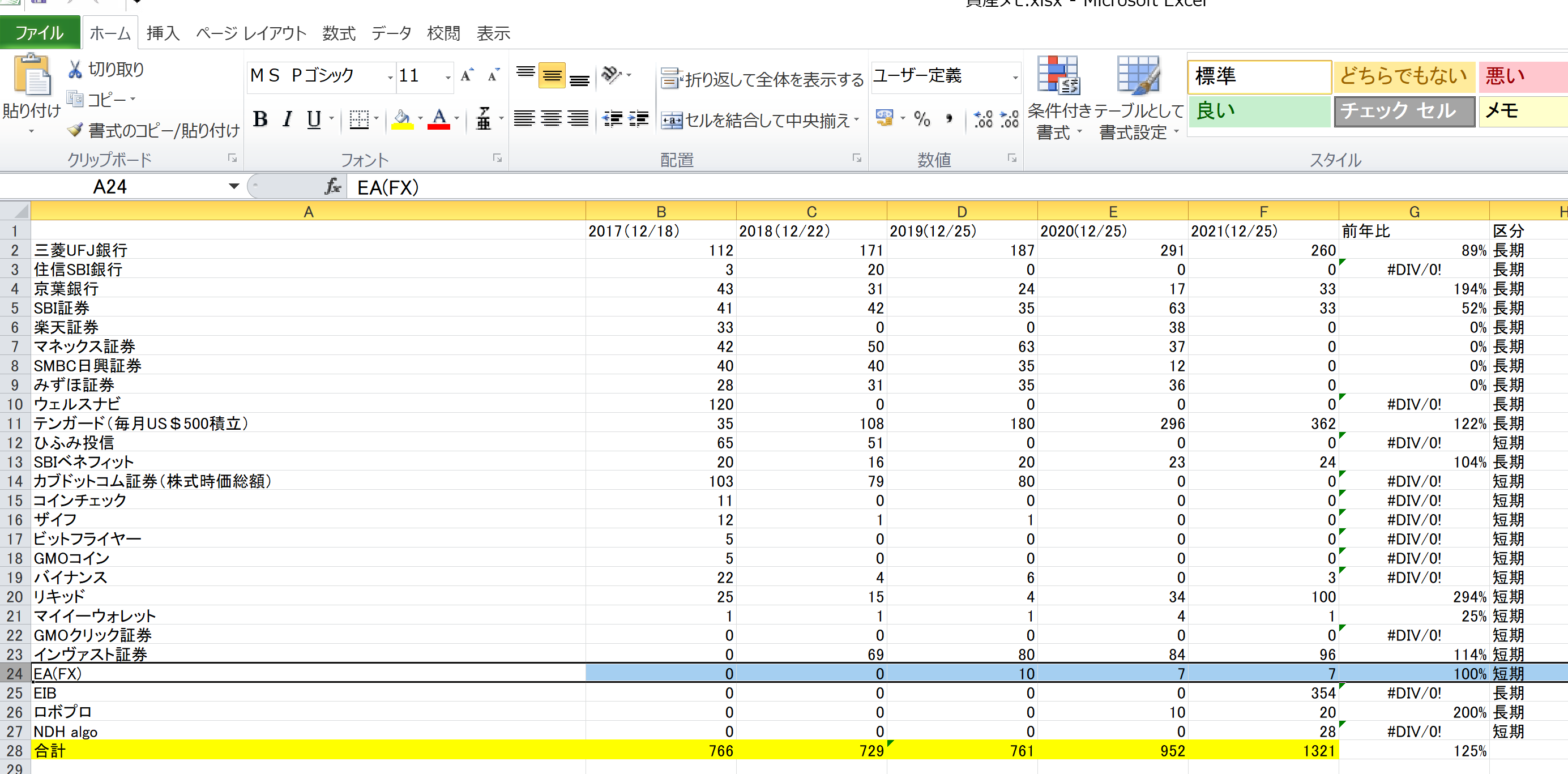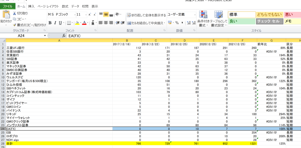 今年もあまりこの行動がよかった!と胸を張れる内容はありませんが、資産規模は膨れています。(前年比125%、+369万円)