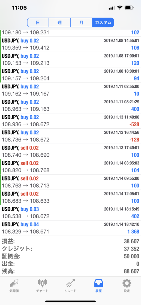 ※原資は5万で0.02ロット、ドル円5分足、最大ポジション10で運用しています。