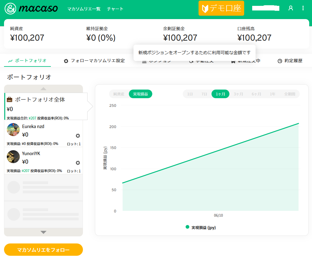 当該マカソムリエをフォローする場合には、1ポジションあたりの取引数量や