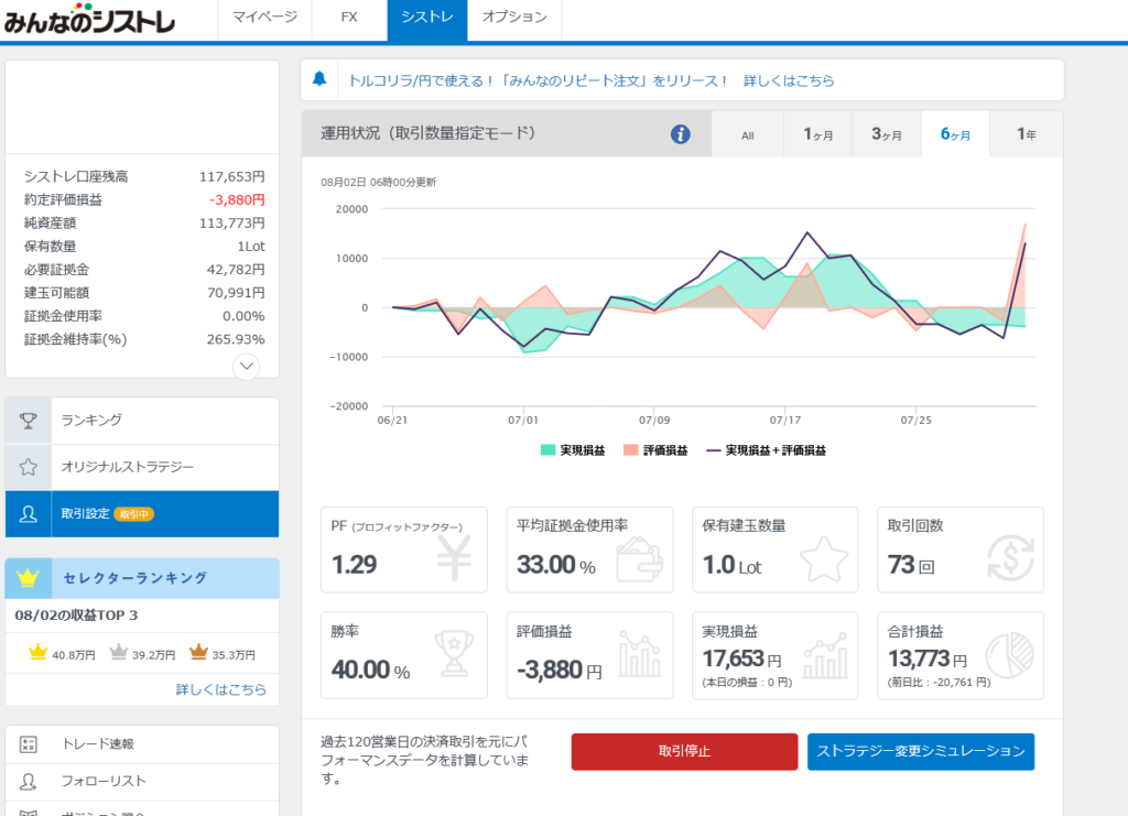 さっそく6/24から開始しました!3週間終了しての結果がこちら。※10万円、1Lot
