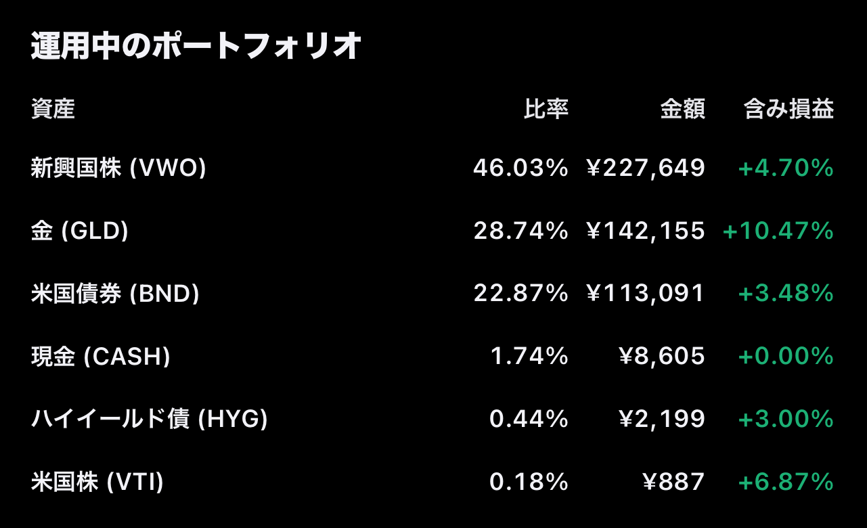 金は最大でも30%の配分に制限されているようです。(現在のポジションでほぼMAX)