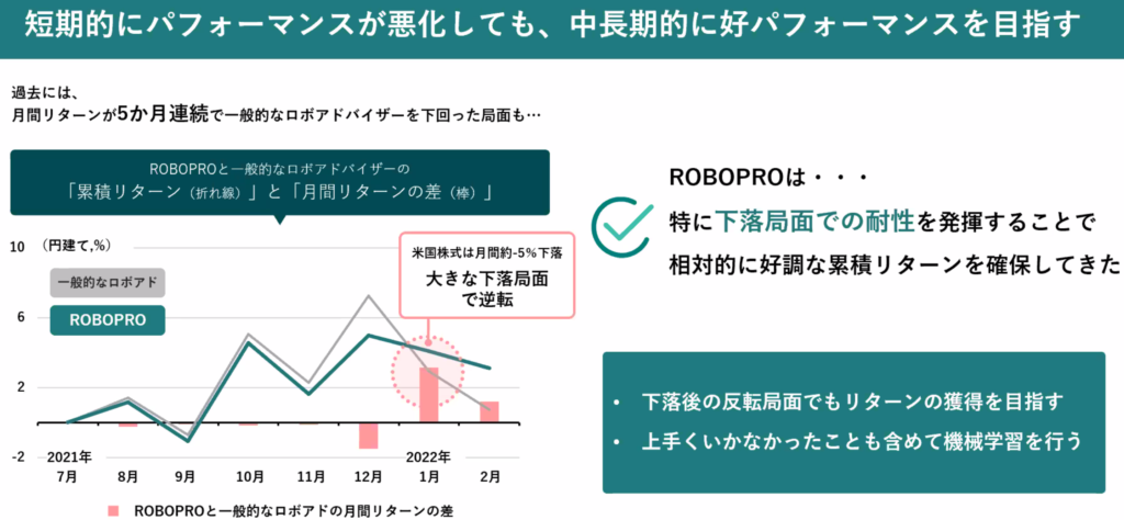2023年のデータも学習しているそうなので今年は説明通り下落を抑えてリターンを追求できるでしょうか。
