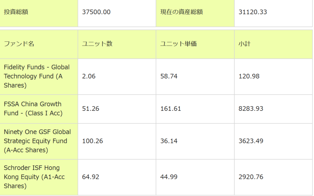 下記のCash Fundがポジションから消えました。たぶんポジション入れ替え中なんだと思います。