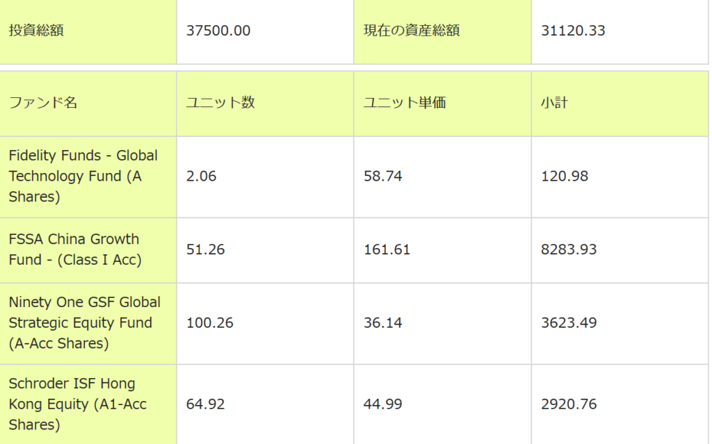 下記のCash Fundがポジションから消えました。たぶんポジション入れ替え中なんだと思います。