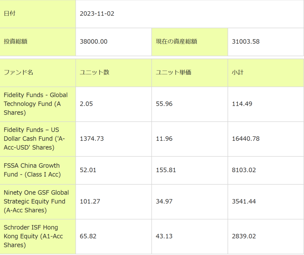 2023/10/13にポジション変更がありました。Cash Fundがポジションが増えました。