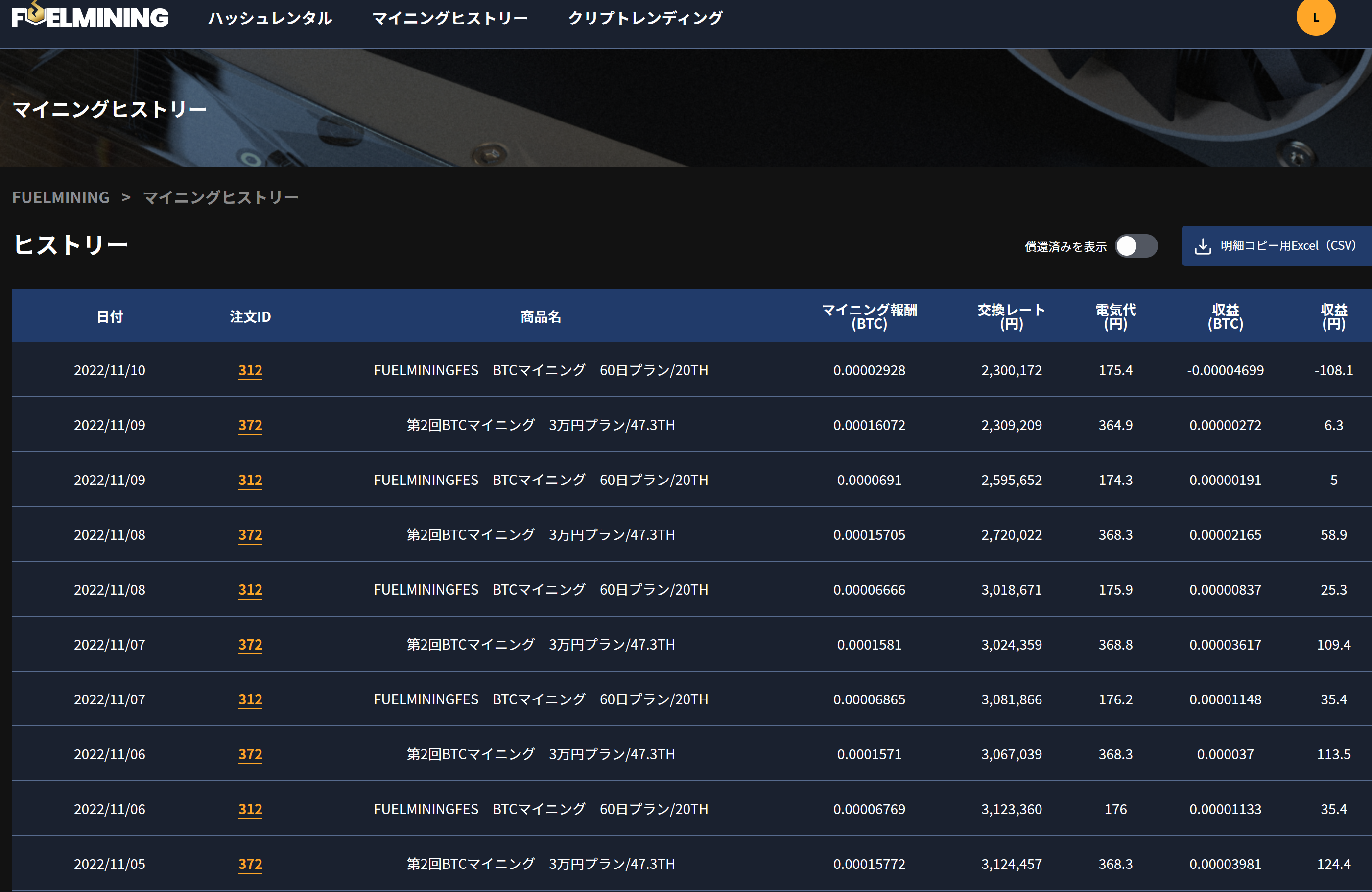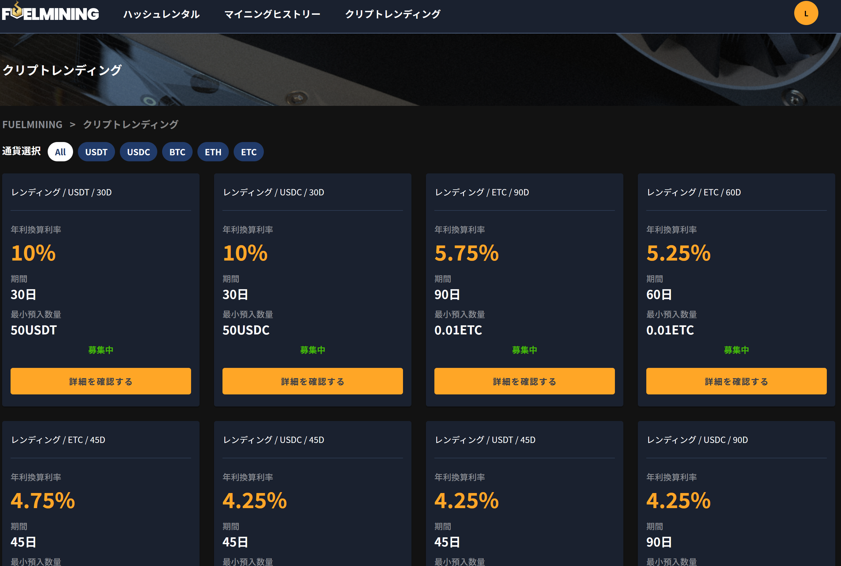 あと気になる点、マイニングは期間中の収益予測が利率として記載されていたのですが、レンディングは年率換算だそうです。