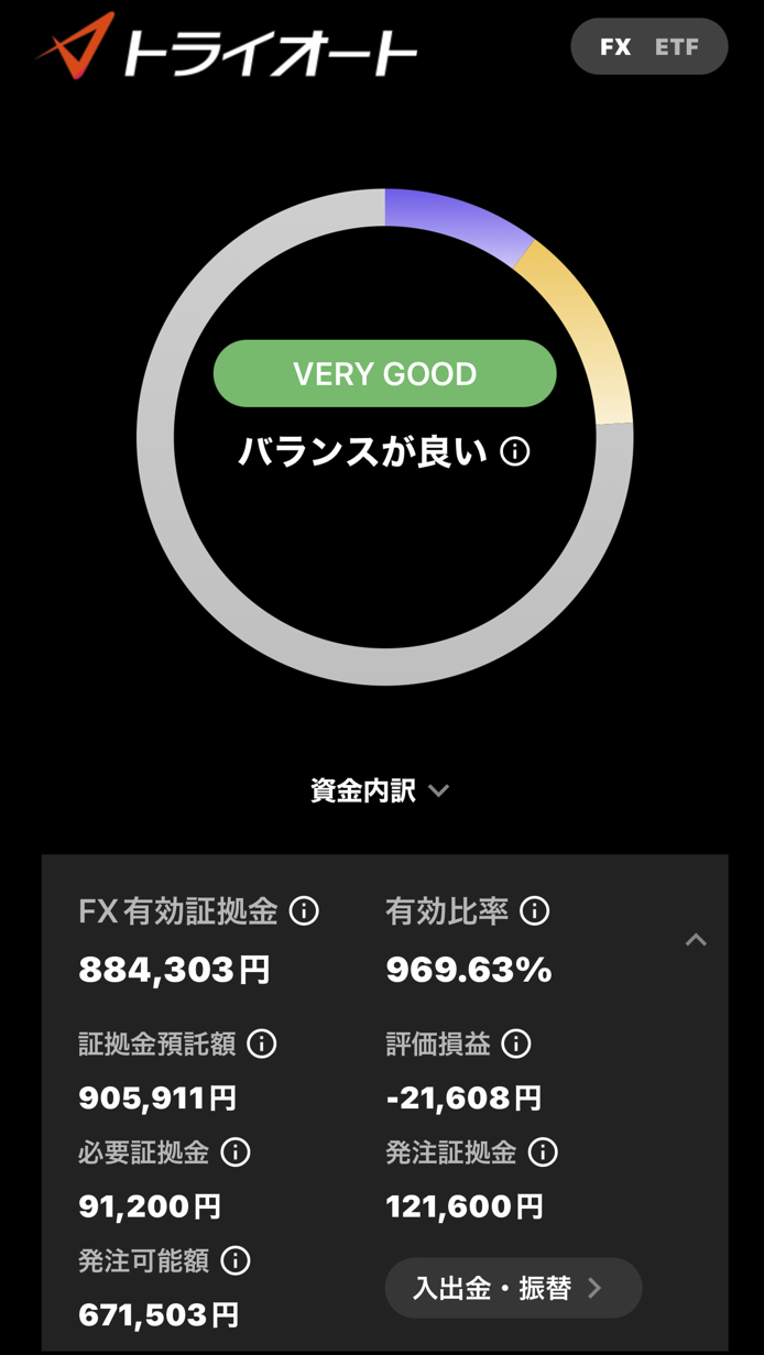 905,911(含み損-21,608)先週比+3,334(含み損の前週比-24,747)