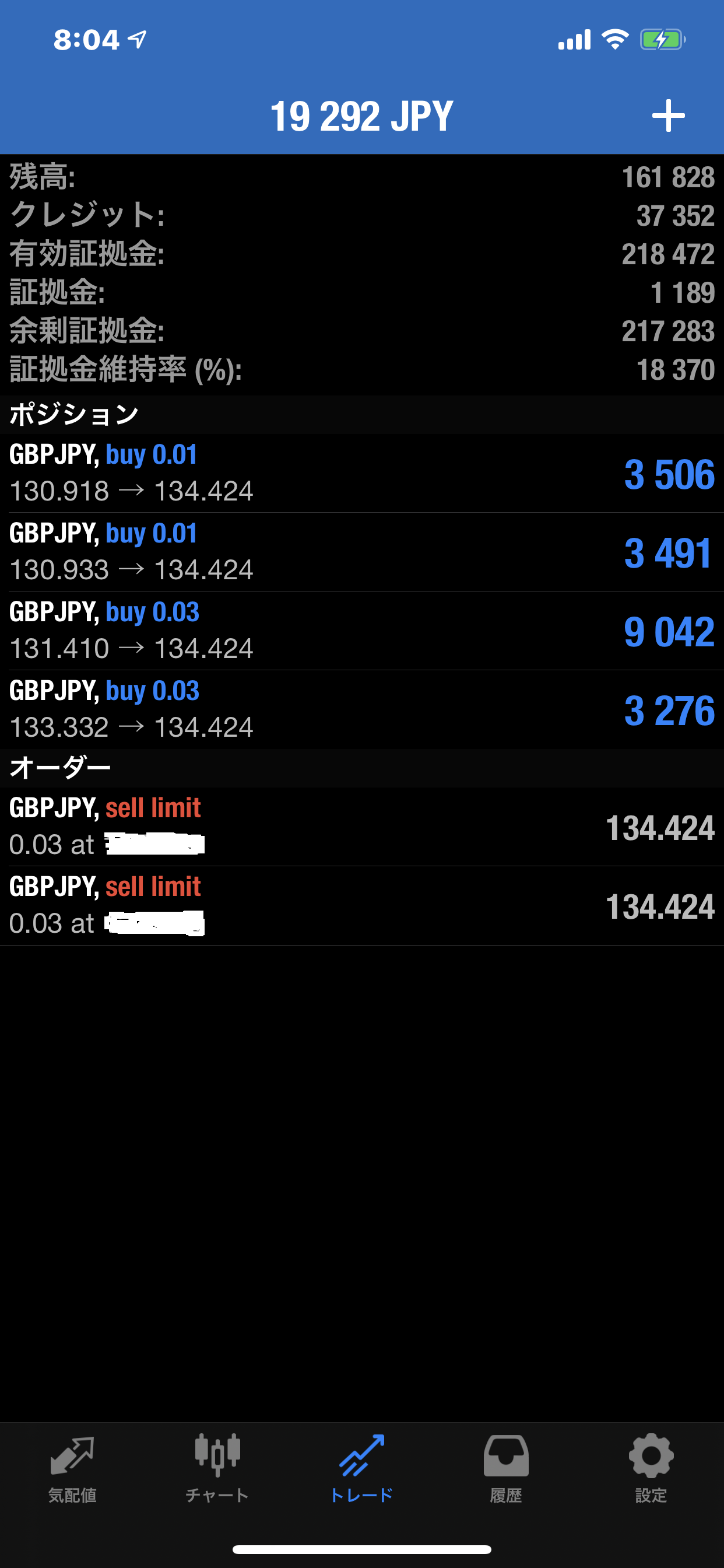 証拠金/ボーナス込み