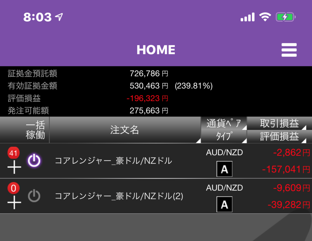 口座残高やポジション数などに注意してください。