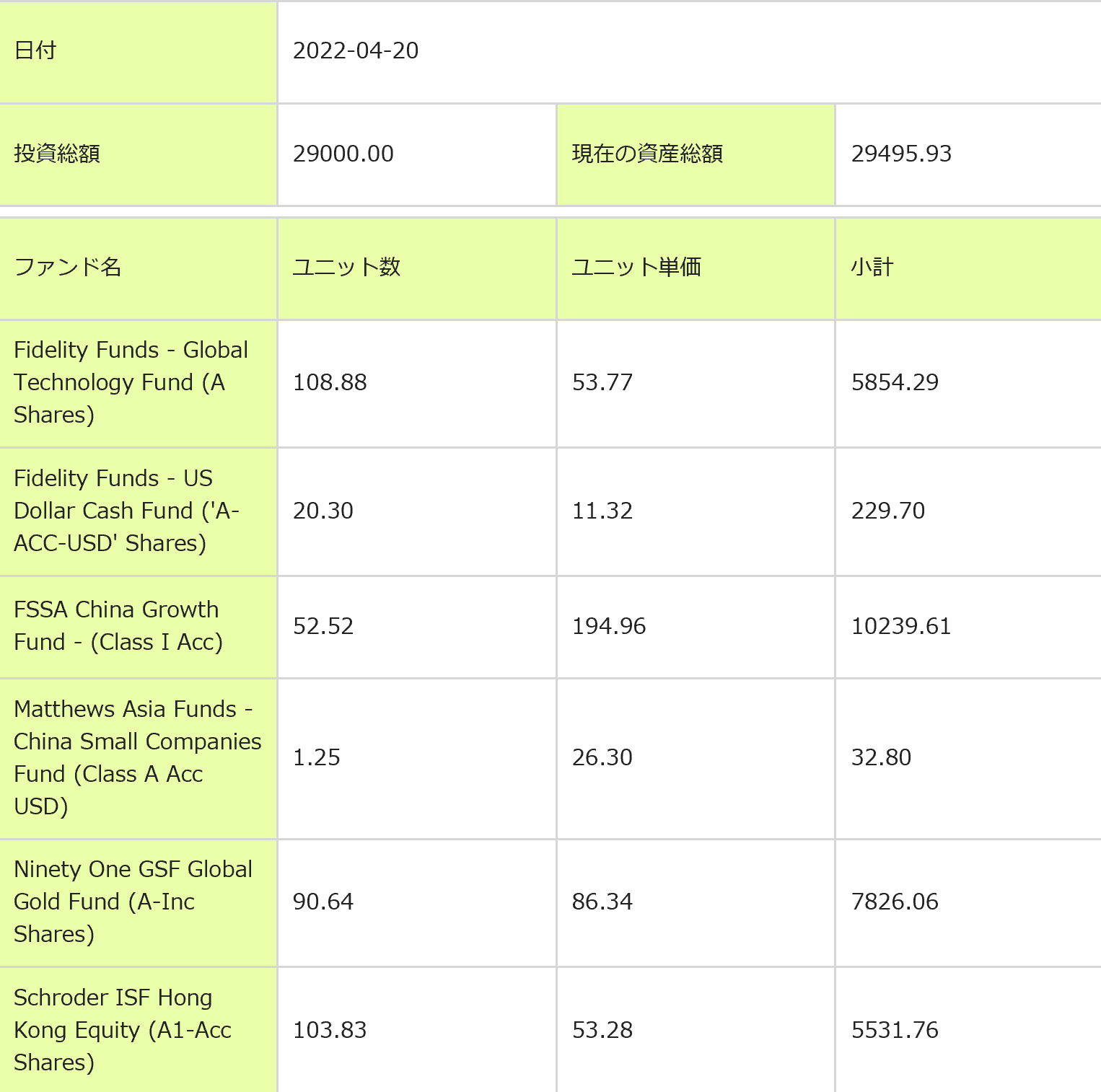 変更後のPFはざっくりチャイナグロース40%、グローバルテクノロジー20%、グローバル金鉱株20%、香港株20%