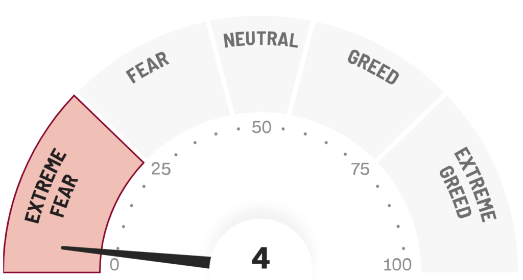 Fear&GreedIndexは4と久し振りに見る水準です。コロナショックでは1まで下がりましたが短期的にはほぼ底と見ていいんじゃないかと思います。
