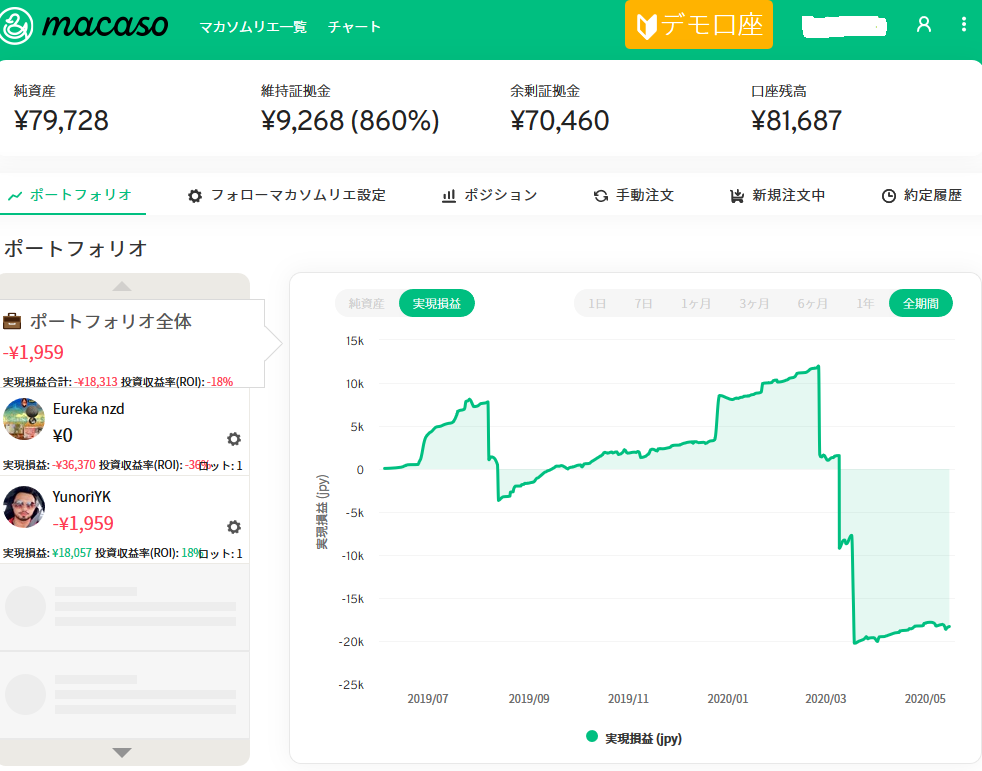 今週5位のchunyffs333は、1つのポジションでコツコツ利益を
