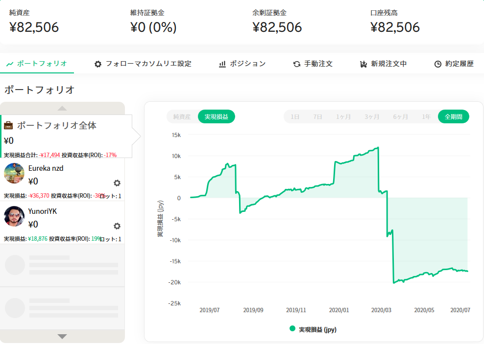 6/15‐6/19  182,046/249,373(仕掛け中、やっと含み益の水準に!控えめに言って死ぬかと思ったw)