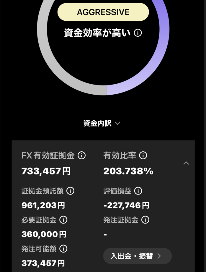 表示デザインがちょっと変わりましたが、資金効率が高い=リスク取りすぎとも読めますね。