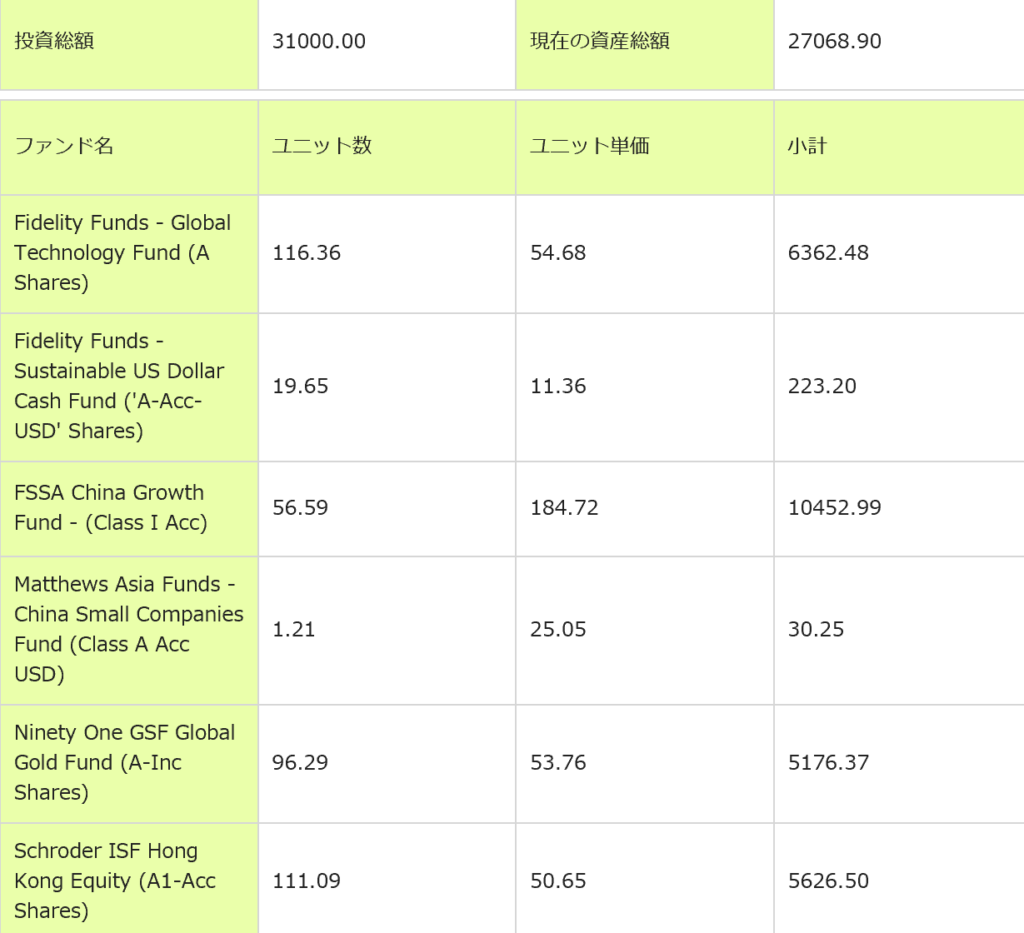 変更後のPFはざっくりチャイナグロース40%、グローバルテクノロジー20%、グローバル金鉱株20%、香港株20%