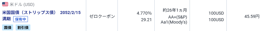 米国ゼロクーポン債